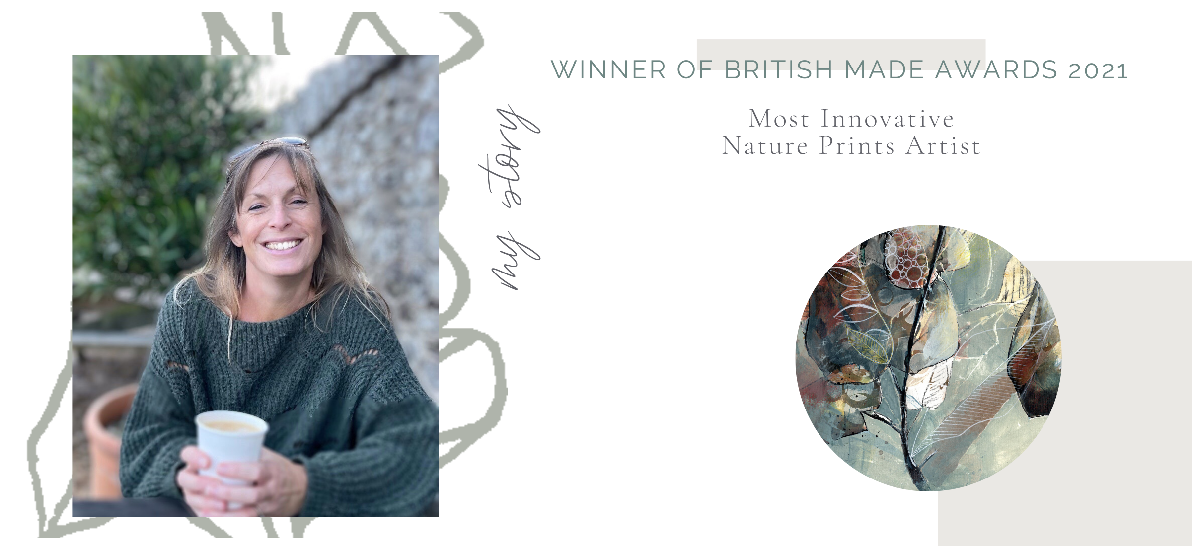 I continue to work intuitively, using a mix of different media, including hand printed collage papers using fresh foliage from my garden & Cornish hedgerows.